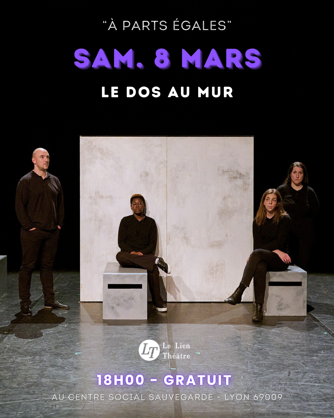 A l’origine du projet À parts égales, il y a l’envie de continuer d’explorer un chantier artistique déjà entamé par la compagnie. Cette exploration, c’est celle de l’égalité réelle entre les femmes et les hommes. Une idée motrice déjà abordée par la compagnie dans ses précédentes pièces comme Sois belle et tais-toi, Respirs ou encore Projet H : Manuel de combat. Ainsi, une nouvelle idée de création professionnelle commence à se dessiner. La recherche porte autour d’une pièce sur les masculinités, et plus particulièrement celle dans le spectre des violences dans le couple. C’est le début d’un véritable travail de fond et de forme, qui viendra ensuite nourrir la pièce que l’on nommera Le dos au mur – violences dans le couple : portraits au masculin. Ces constats donnent alors naissance au projet au sein des quartiers de Lyon 9e : À parts égales.