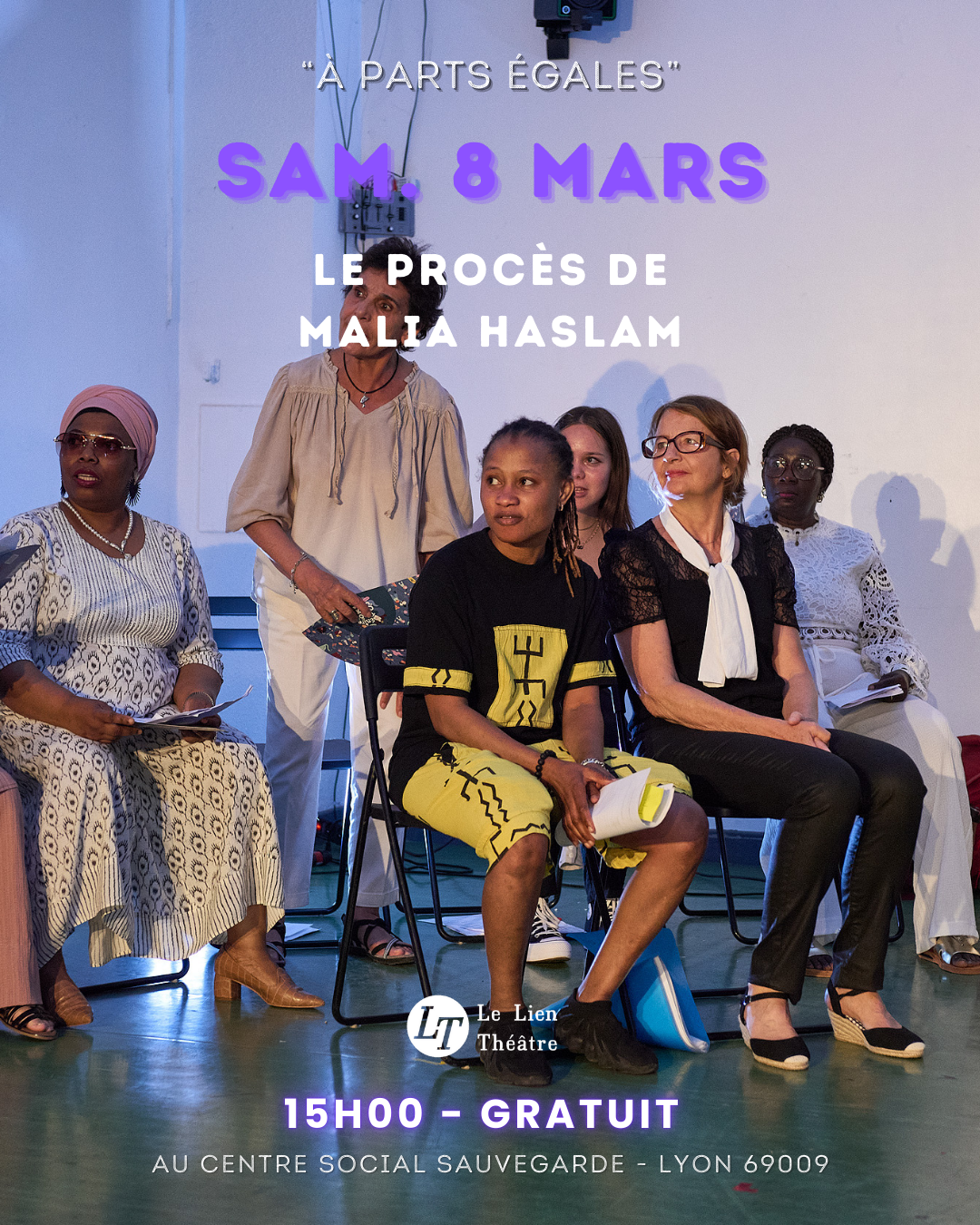 Plusieurs temps forts ont mis en lumière les étapes marquantes de ce projet : la représentation de la courte forme VIF, une première lecture du futur spectacle professionnel, la restitution de la pièce des jeunes du lycée François Cevert, puis la première du Procès de Malia Haslam en juin 2025 accompagné d’une représentation du spectacle Le dos au mur, véritable colonne vertébrale du projet. Ces restitutions au Centre Social Sauvegarde furent un succès auprès des participant·es comme des partenaires. C’est pourquoi en a découlé une seconde journée spéciale de représentations le samedi 8 mars 2025, à l’occasion de la journée des droits des femmes.